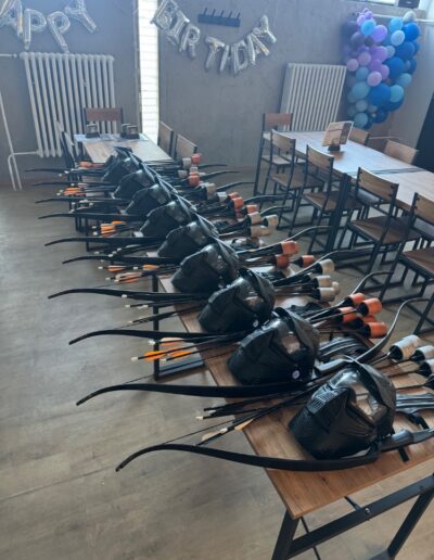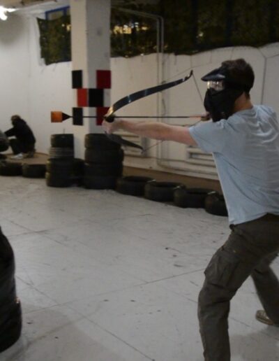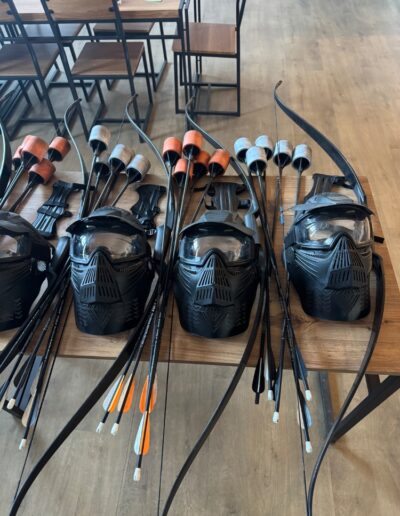 Archery WAR se hraje se speciálními luky a šípy s měkkými pěnovými hroty, takže si užijete napětí a akci bez zbytečné bolesti. V ceně máte kompletní vybavení včetně ochranných masek, chráničů a instruktáže od našeho zkušeného personálu.